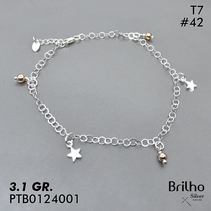 T7N042 TOBILLERA ESTRELLA Y BALêN ORO PLATA