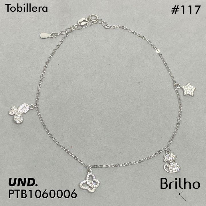 T7N117 TOBILLERA ESTRELLA, GATO Y MARIPOSAS RODIO