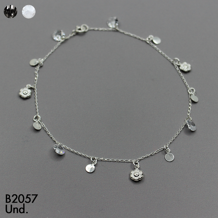 T7N095 TOBILLERA CIRCONES REDONDOS Y FLORES